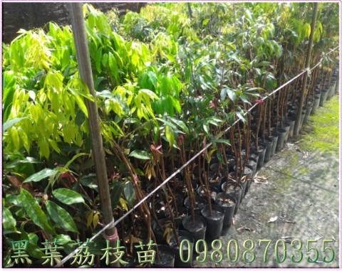 黑葉荔枝苗 定植行距×株距(公尺):4 × 4 公尺 相關種植知識研究,請上網。 "農業部水果知識主題館"